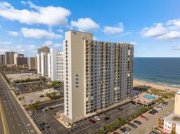 Welcome to this partially renovated 2-bedroom, 2 full bathroom 8th-floor condo, offering the perfect blend of comfort, space, and coastal living. This bright and airy residence features a spacious 20-foot private balcony, ideal for relaxing, entertaining, or simply taking in the breathtaking panoramic views of the ocean, bay, and city skyline. Upon entry, you’re immediately welcomed by an open-concept floor plan designed for both functionality and style. Double 9-foot sliding glass doors flood the living space with natural light and seamlessly connect the indoors with the outdoor living area, creating a true coastal retreat feel. The thoughtfully designed split-bedroom layout ensures maximum privacy, making it perfect for both full-time living and hosting guests. The primary suite offers a peaceful escape, complete with a renovated ensuite bathroom and sweeping water and city views. The generously sized second bedroom, located on the opposite side of the condo, comfortably accommodates two queen-size beds and provides easy access to a full hall bathroom, ideal for family or visitors. With approximately 1,078 square feet of living space, this condo stands out for its size, natural light, and livability. Whether you’re looking for a primary residence, vacation home, or investment property, this unit checks all the boxes. Located in a well-managed 22-story oceanfront high-rise, residents enjoy direct beach access along with a range of desirable amenities, including a community pool, laundry facilities, and onsite management. Even more appealing—there are no special assessments, offering added peace of mind. Ideally situated off 94th Street, this property places you just moments from everything you need, including shopping, grocery stores, restaurants, the local art center, playgrounds, dog park, basketball courts, and pickleball courts. Experience the best of coastal living with convenience, comfort, and incredible views, this is a opportunity you won’t want to miss.